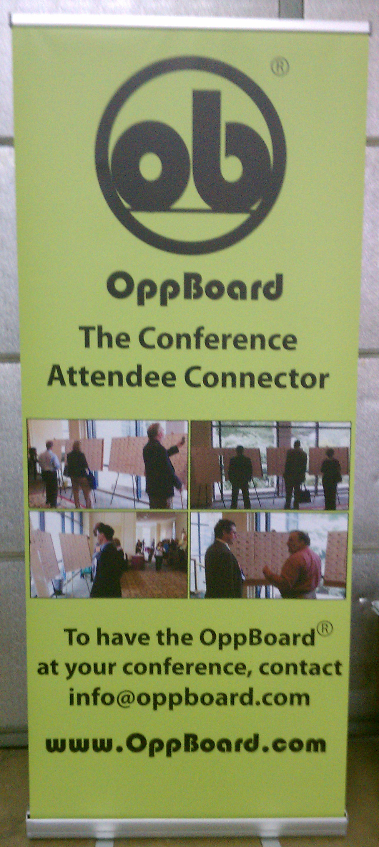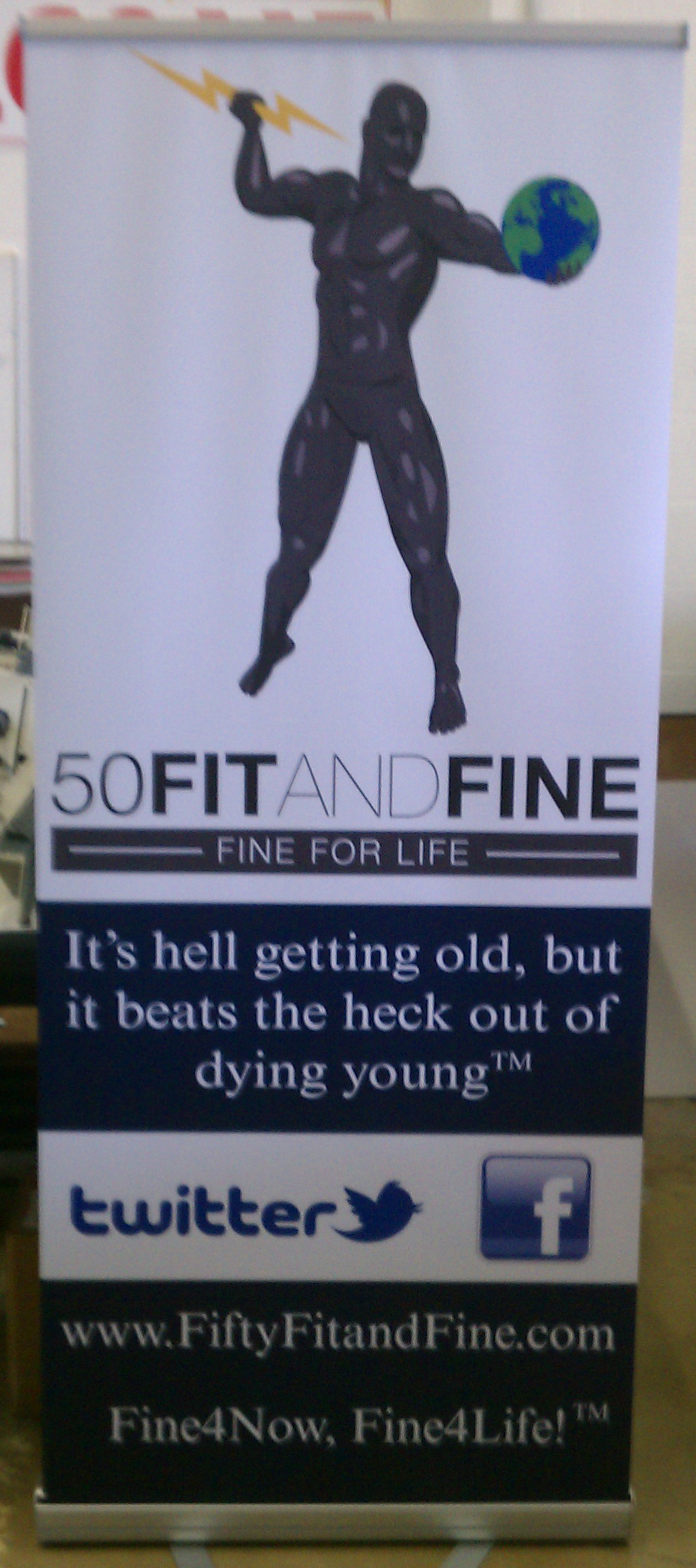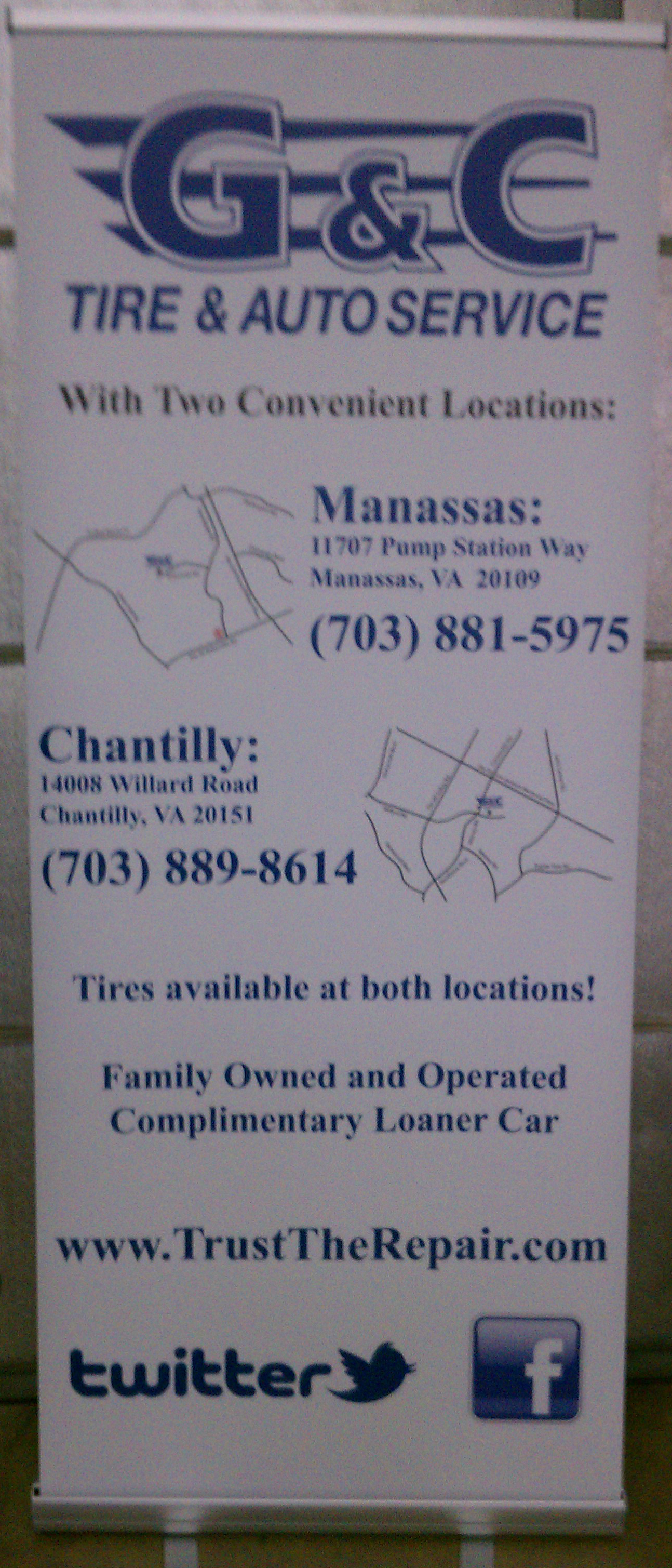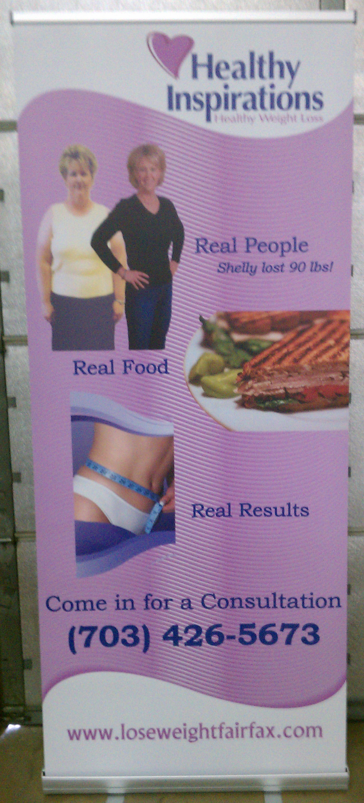 My Role: Design retractable banner using Illustrator. This customer provided us with vector artwork for their logo, so it was suitable for banner-sized printing. I had already found the Facebook and Twitter logos for previous projects and used them for this banner. The printing of this banner was outsourced.